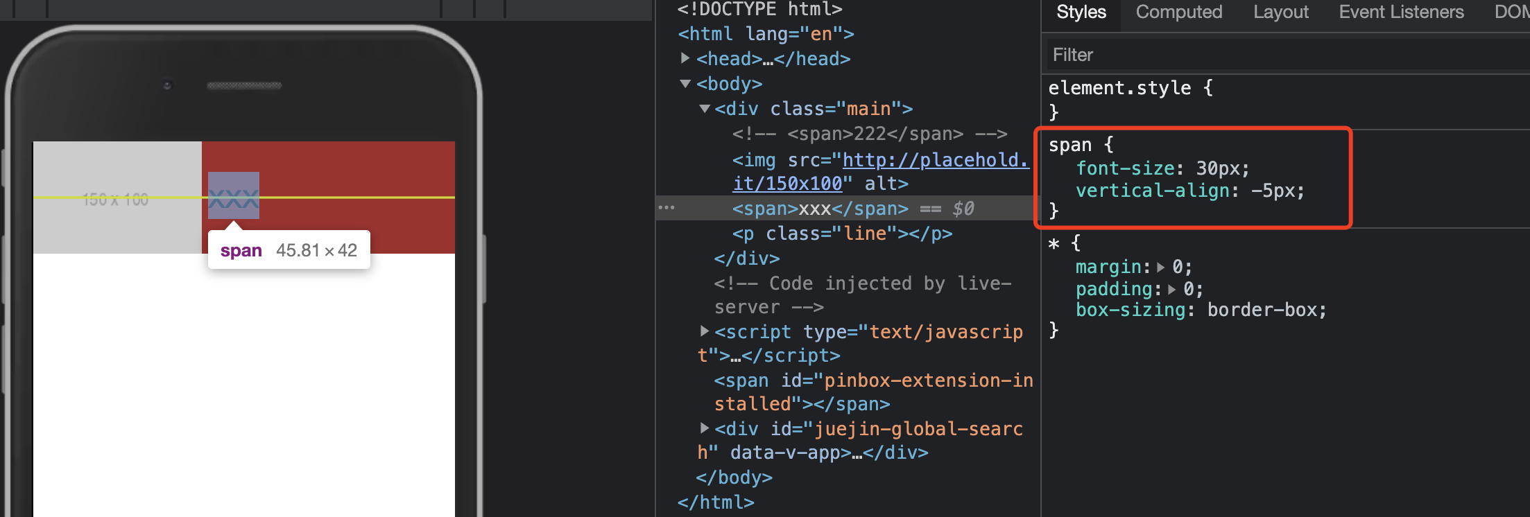 vertical-align:baseline其实就是vertical-align:0 需要精确解决垂直居中的问题是需要在这个基础上进行调试的,比如设置vertical-align为-5px