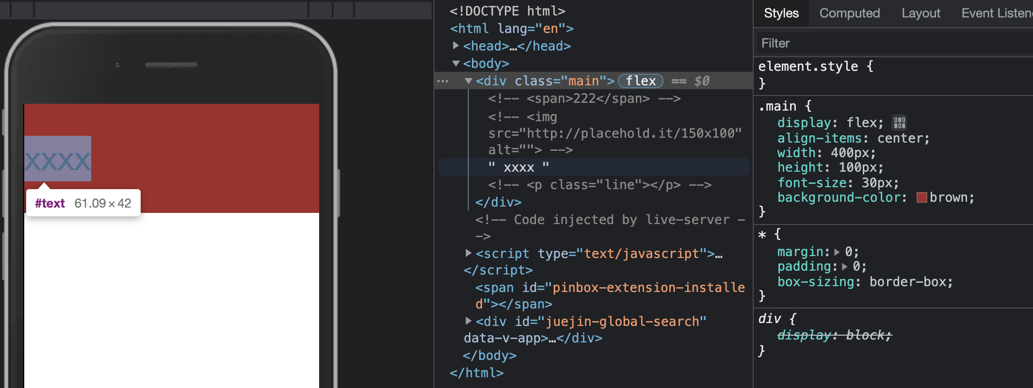可以见得,万能的flex布局实现了文字垂直居中,但文字受到多种因素的影响,精确的垂直居中其实是比较难实现的。